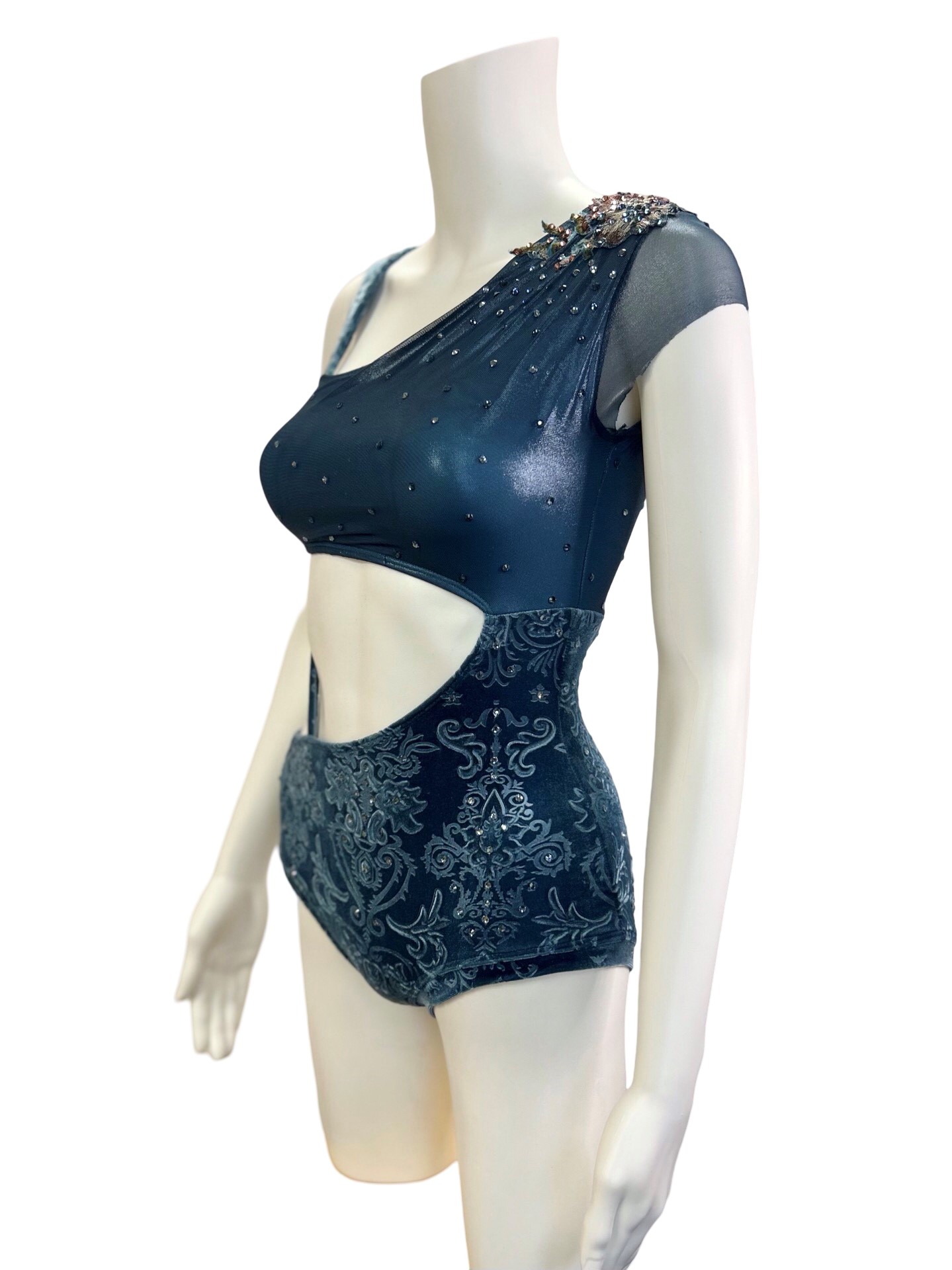 If you would like any changes to the garment (ex: add a skirt, more rhinestones, etc.), send us a message for a quote. Anything changed will have additional charges. The attached cost is for “sold as is”.