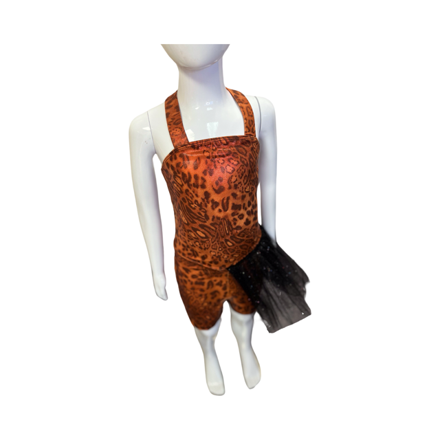 This is the perfect group costume for your next recital. This cute costume is made from print lycra and features a tulle half skirt.